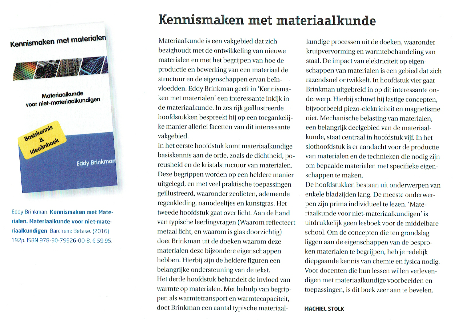 In de NVOX van september 2016, het magazine van de Nederlandse Vereniging voor Onderwijs in de Natuurwetenschappen (NVON), heeft Machiel Stolk de volgende recensie geplaatst: